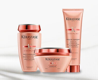 Permite que os cabelos rebeldes pareçam frisados, fortes e disciplinados graças à linha Discipline da Kérastase