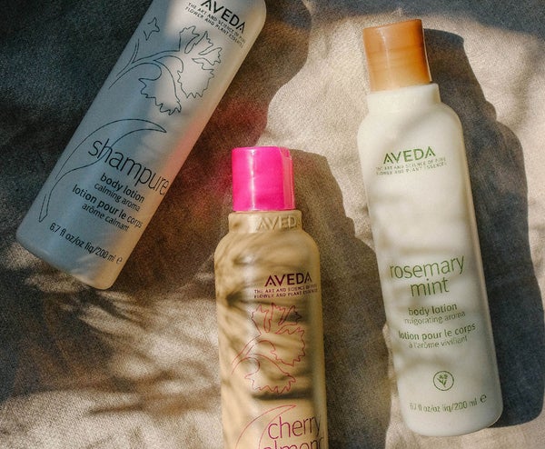 Os produtos Aveda utilizam ingredientes naturais, tais como óleo de Argão, Jojoba, e Jasmin, assim como extrato de chá verde, de forma a deixar os cabelos nutridos.
